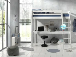 Vipack Hochbett Mit Liegefläche 90 X 200 Cm Und Großer Schreibtischplatte, Ausf. Weiß Lackiert