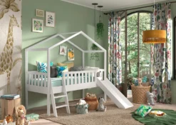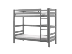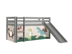 Vipack Halbhohes Bett PINO, Mit Rutsche Und Textilset „Dino“, Ausf. Kiefer Massiv Grau Lackiert