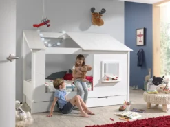 Vipack Hausbett Mit 90 X 200 Cm Liegefläche Und Bettschublade, Korpus Weiß Lackiert, Dach In Weiß