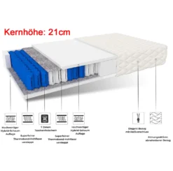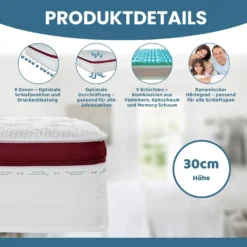 GRAINGOLD WAMO Multipocket Matratze 140×200 Cm Matratze Mit Kokos Taschenfederkernmatratze H2/H3
