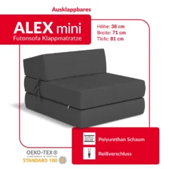 Klappmatratze 70×200 Cm Futonsofa Kaltschaum Polyurethan Höhe Ca. 14 Cm Microfibre Graphitgrau