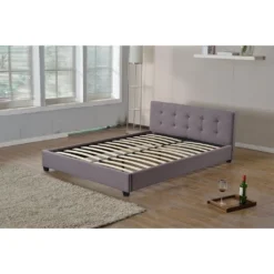 Polsterbett Doppelbett CLAIRE 140 X 200 Cm Anthrazit Grau, Inklusive Lattenrost, Mit Stoffbezug