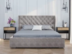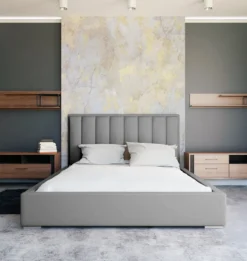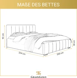 GRAINGOLD Doppelbett 140×200 Luxe – Polsterbett Mit Lattenrost & Kopfteil – Modernes Design – Grau
