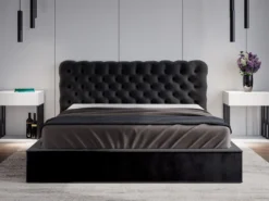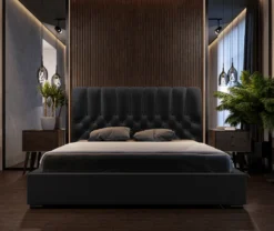 GRAINGOLD Doppelbett 180×200, Polsterbett Mit Bettkasten, Rückenlehne Und Lattenrost Ark – Grau