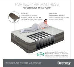| Zusätzliche Varianten | Bestway® Fortech™ Luftbett Snugable Top™ mit integrierter Elektropumpe Double XL/Lo 203 x 152 x 36 cm, Bestway® Fortech™ Luftbett mit integrierter Elektropumpe Double XL/Lo 203 x 152 x 36 cm, Bestway® Fortech™ Luftbett mit integrierter Elektropumpe Double XL/Mid 203 x 152 x 46 cm |