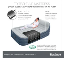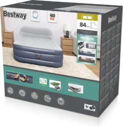 | Zusätzliche Varianten | Bestway® TriTech™ Luftbett Aerolux mit integrieter Elektropumpe Double XL/Mid 203 x 152 x 46 cm, Bestway® TriTech™ Luftbett Montana mit integrierter Elektropumpe Double XL/Hi 203 x 152 x 61 cm, Bestway® TriTech™ Luftbett Montana mit integrierter Elektropumpe Double XL/Hi 203 x 193 x 56 cm, Bestway® TriTech™ Luftbett QuadComfort™ mit integrierter Elektropumpe Double XL/Hi 203 x 152 x 51 cm, Bestway® TriTech™ Luftbett SleekFlow™ mit Kopfteil & Luftpumpe Double XL/Hi 226 x 152 x 84 cm, Bestway® TriTech™ Luftbett Vento mit integrierter Elektropumpe Double XL/Hi 203 x 152 x 56 cm, Bestway® TriTech™ Luftbett mit integrierter Elektropumpe Double XL/Hi 203 x 152 x 51 cm |