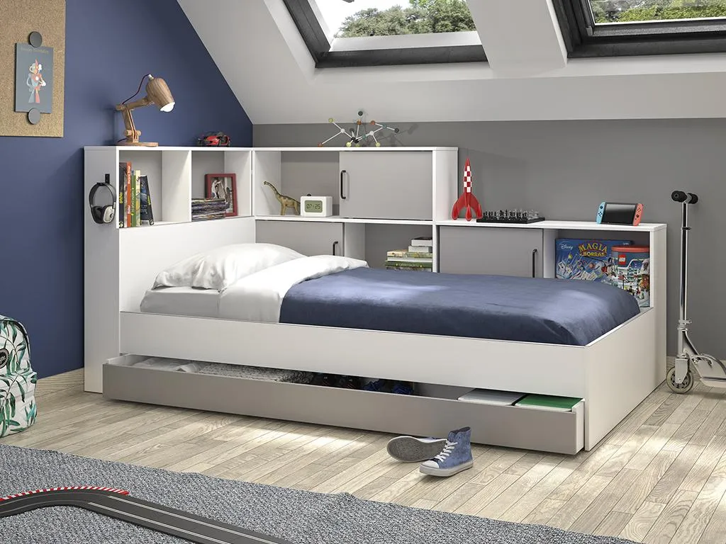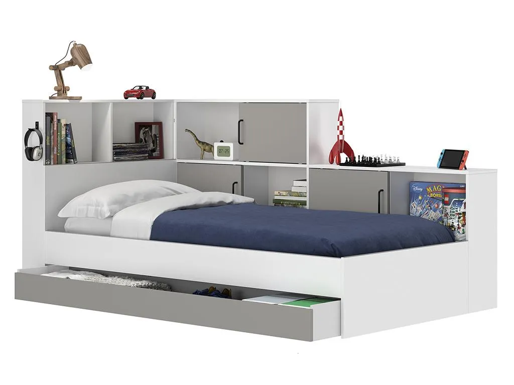 Bett Mit Stauraum & Schublade – 90 X 200 Cm – Weiß & Grau – ARMAND