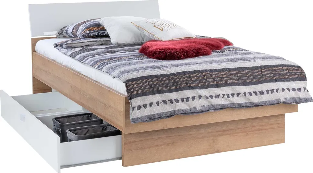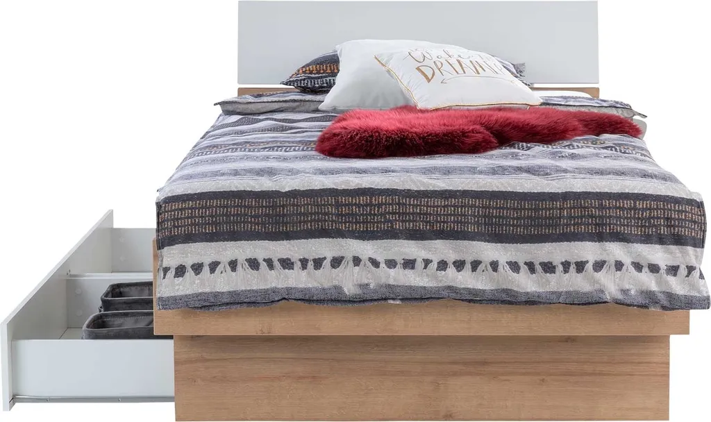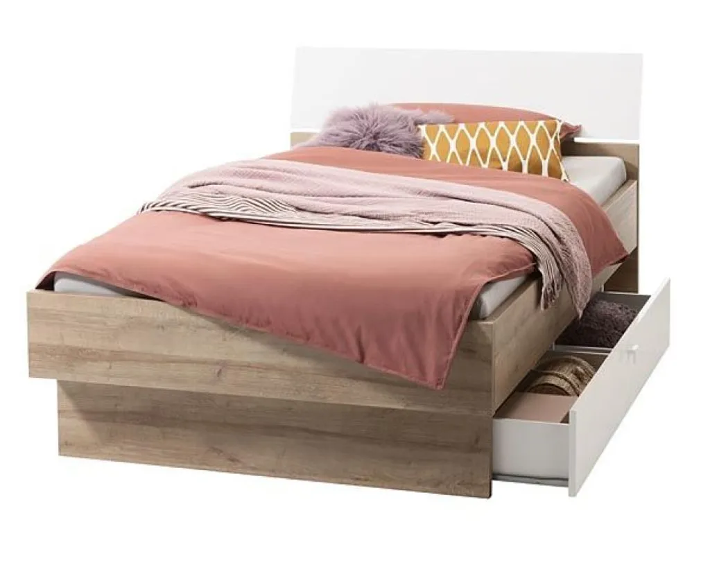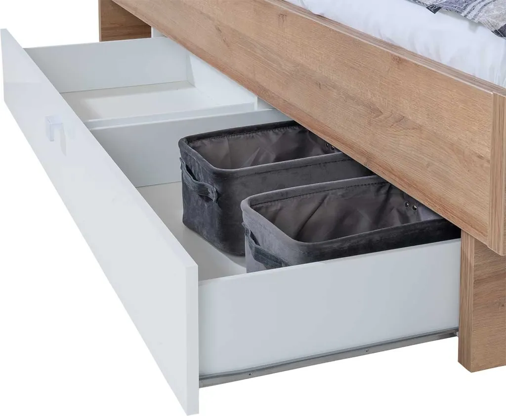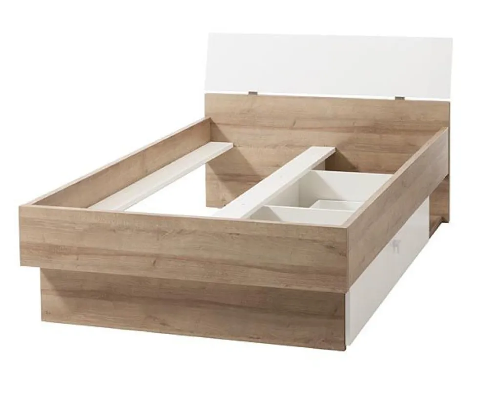 Bettgestell – Riviera EicheNachbildung – Weiß Hochglanz – 120 X 200 Cm