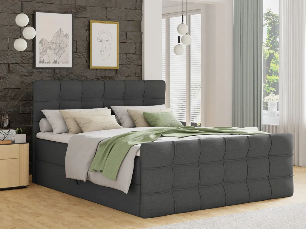 Boxspringbett Best Lux Mit Fußteil, 2 Bettkästen, Bonell-Matratze Und Topper (Dunkelgrau (Inari 94), 180 X 200 Cm)