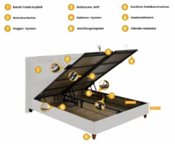 Boxspringbett Doppelbett – Borjen Bambi Yatak Das Perfekte Bett Für Ihr Schlafzimmer. 180x200cm Bett Taschenfederkern-Matratze, Topper Mit Memoryeffekt, Mit Bettkasten