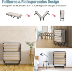 COSTWAY 80x190cm Gästebett Klappbar Mit Matratze, Klappbett Aus Stahl Bis 130kg Belastbar, Faltbett Tragbar Auf Rädern, Einzelbett Für Büro & Gästezimmer