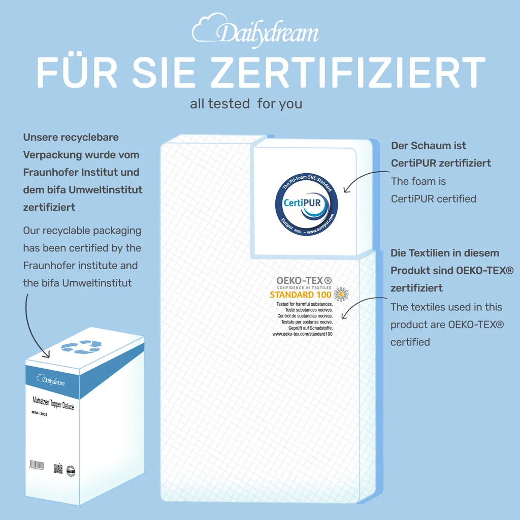 Dailydream Viscoelastischer Matratzentopper “Model L“ Mit Memory Foam Effekt, 140x200x7cm, Edition „Standard“