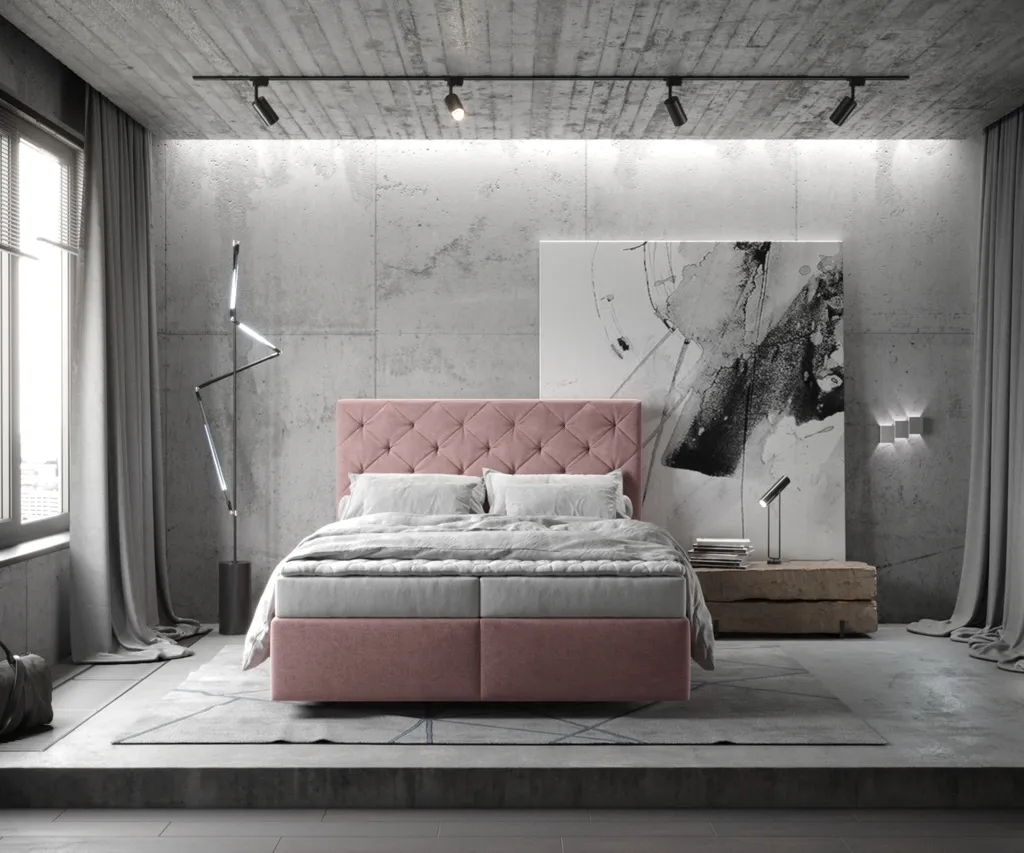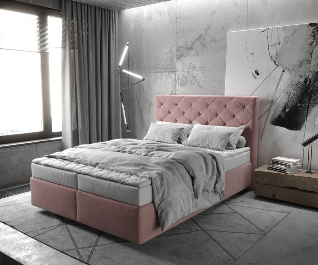 DELIFE Boxspringbett Dream-Great 140×200 Cm Mikrofaser Rosé Mit Matratze Und Topper