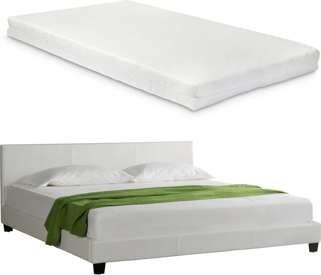 Design Polsterbett + Matratze 180 X 200 Cm Kunst-Leder Weiß Doppel Bett CORIUM
