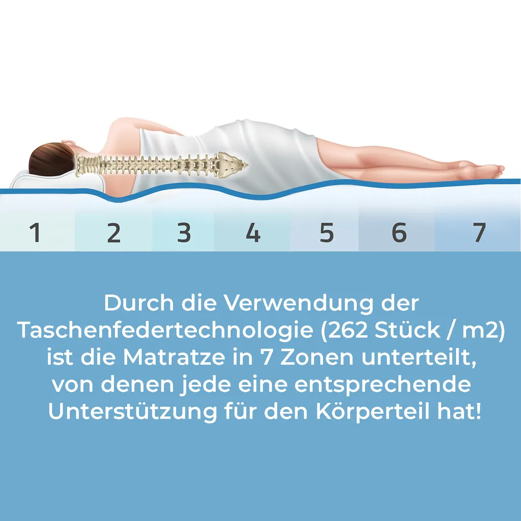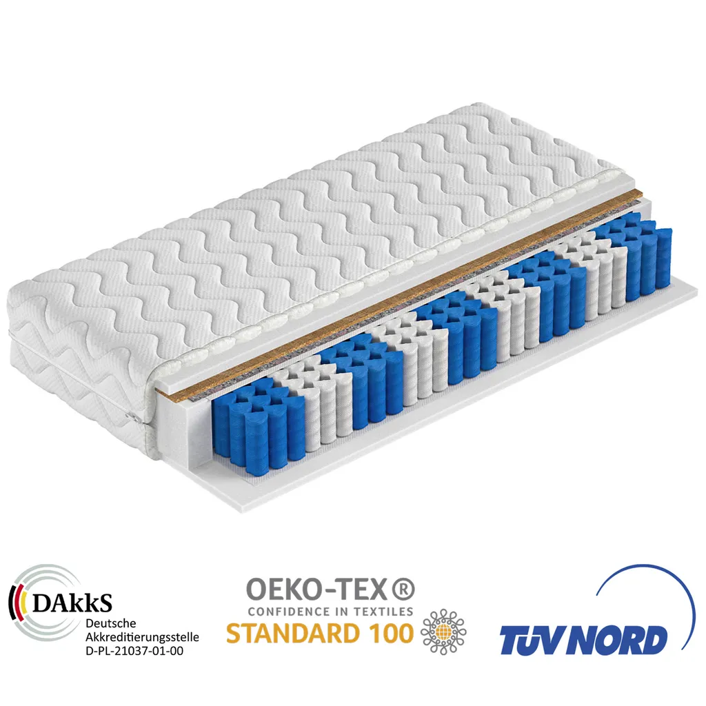 Matratze 90×200 Cm REGGIO H2 H3 Premium 7 Zonen Taschenfederkern Visco Schaum Kokos Höhe Ca. 25 Cm