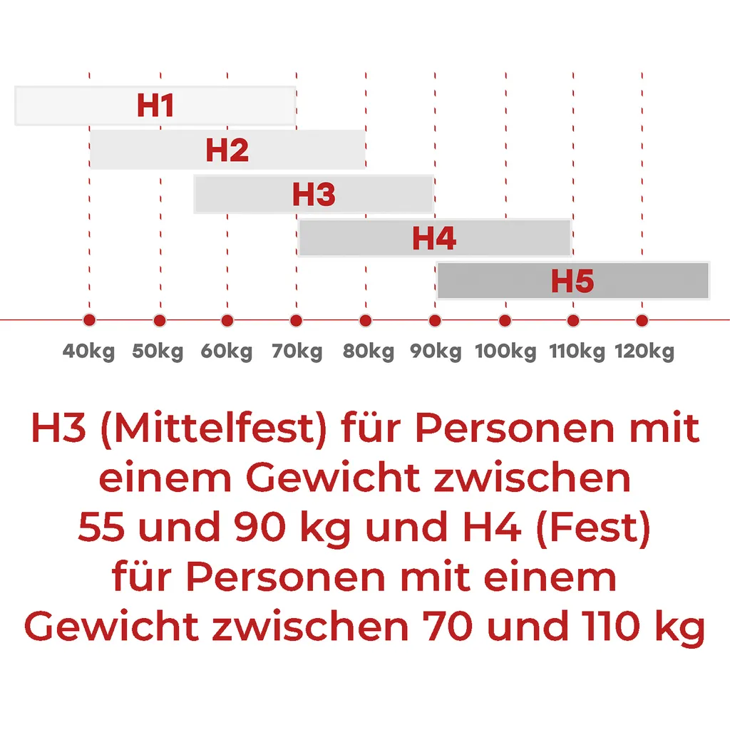 | Breite | 0,8 m, 0,9 m, 1,2 m, 1,4 m, 1,6 m, 1,8 m, 2 m |
