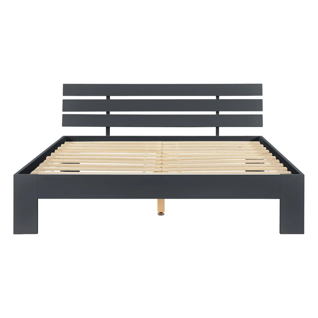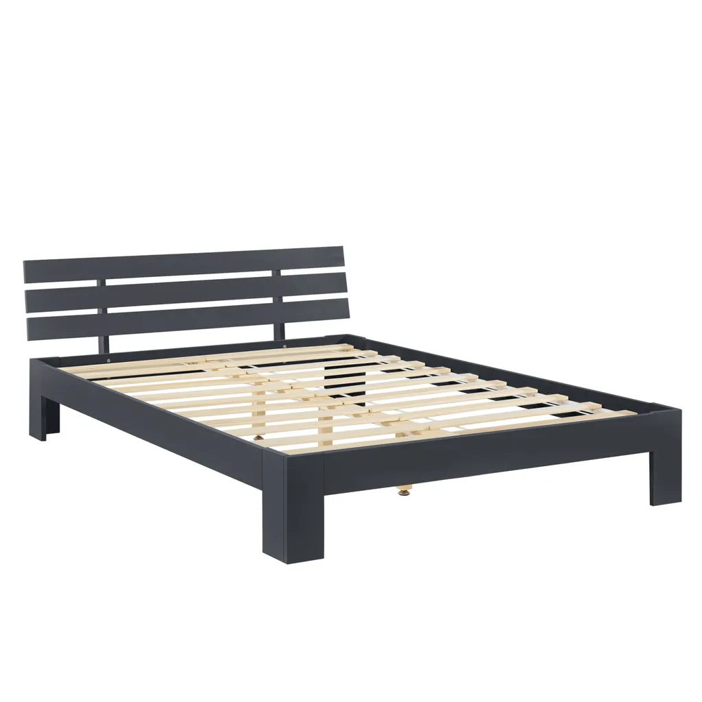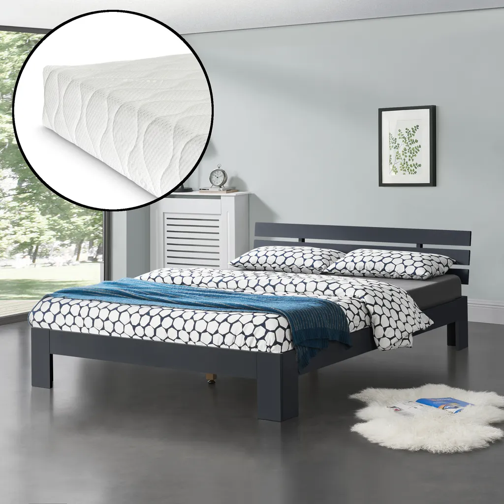 [en.casa] Holzbett 140 X 200 Cm Mit Matratze Bettgestell Kiefernholz Dunkelgrau Mit Lattenrost Bettrahmen Mit Kaltschaummatratze