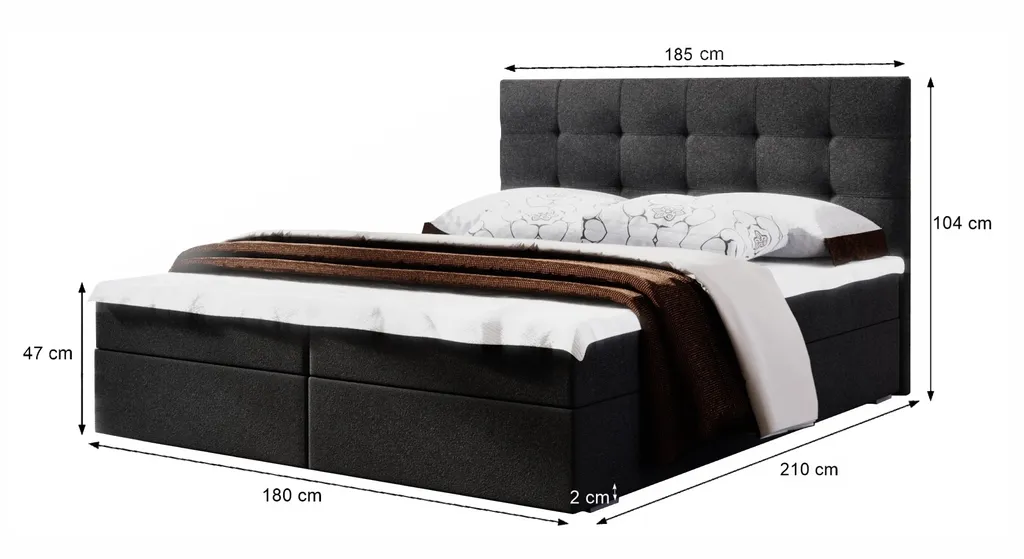 Furnix Boxspringbett Bett Mit Bettkasten FISON 2 180×200 Cm Polsterbett CO100 Dunkelgrau