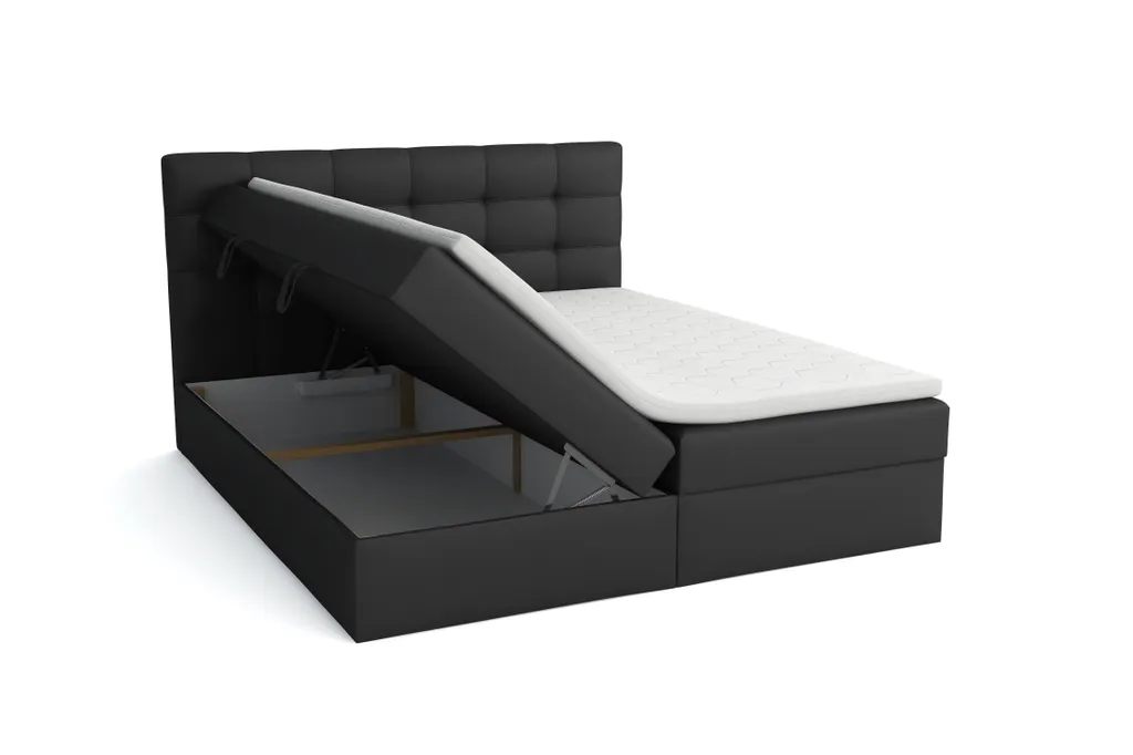 FURNIX Boxspringbett Mit Bettkasten Topper GANYMEDES Schwarz 160×200 SF11