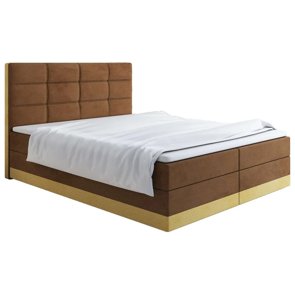 FURNIX Boxspringbett VOLANTIS 140×200 Bettkasten Topper AT3010+AT0543 Braun Gold