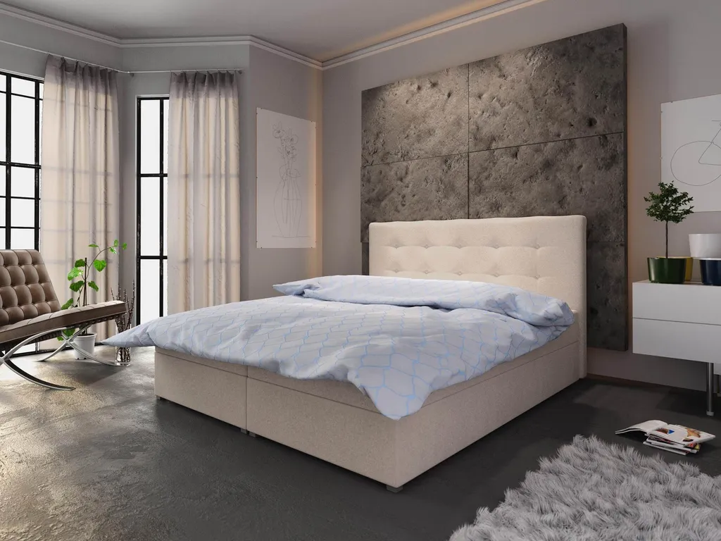 Furnix Polsterbett Mit Matratze Und Bettkasten FISON 180×200 Cm Boxspringbett CO10 Beige