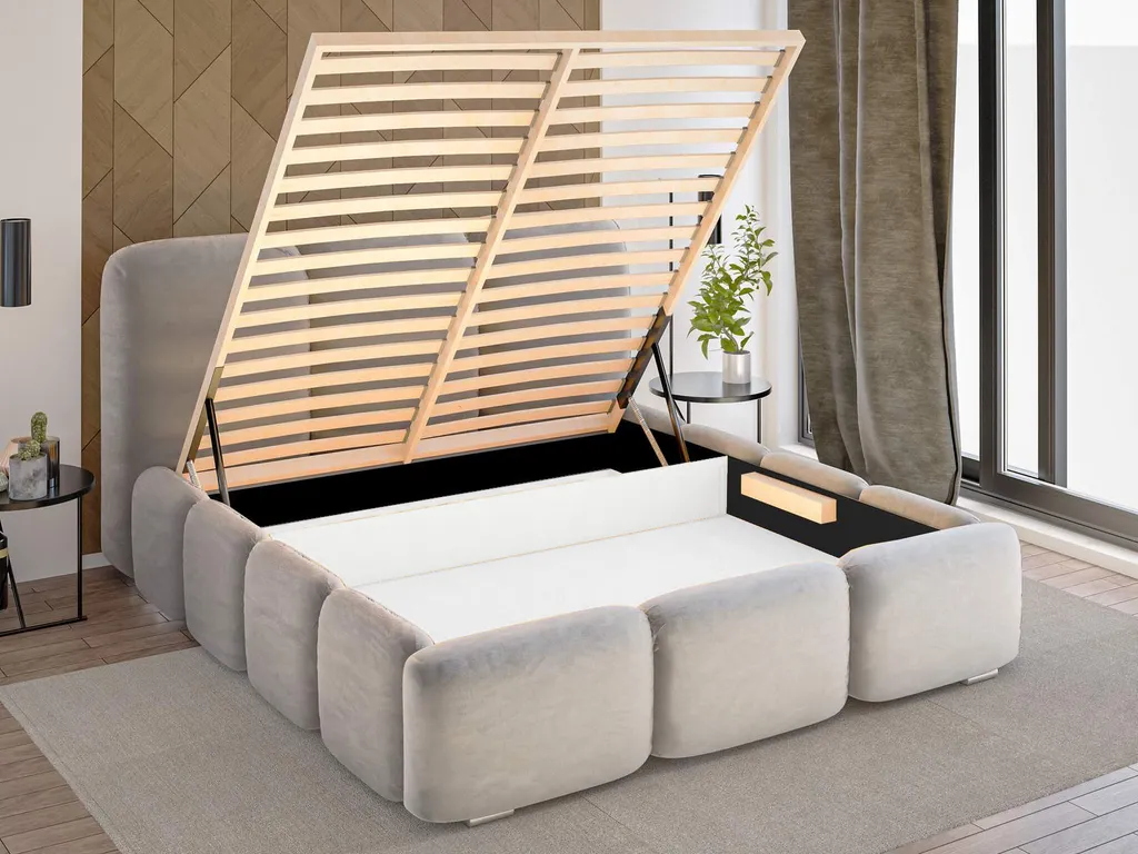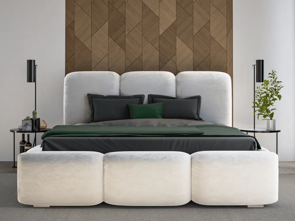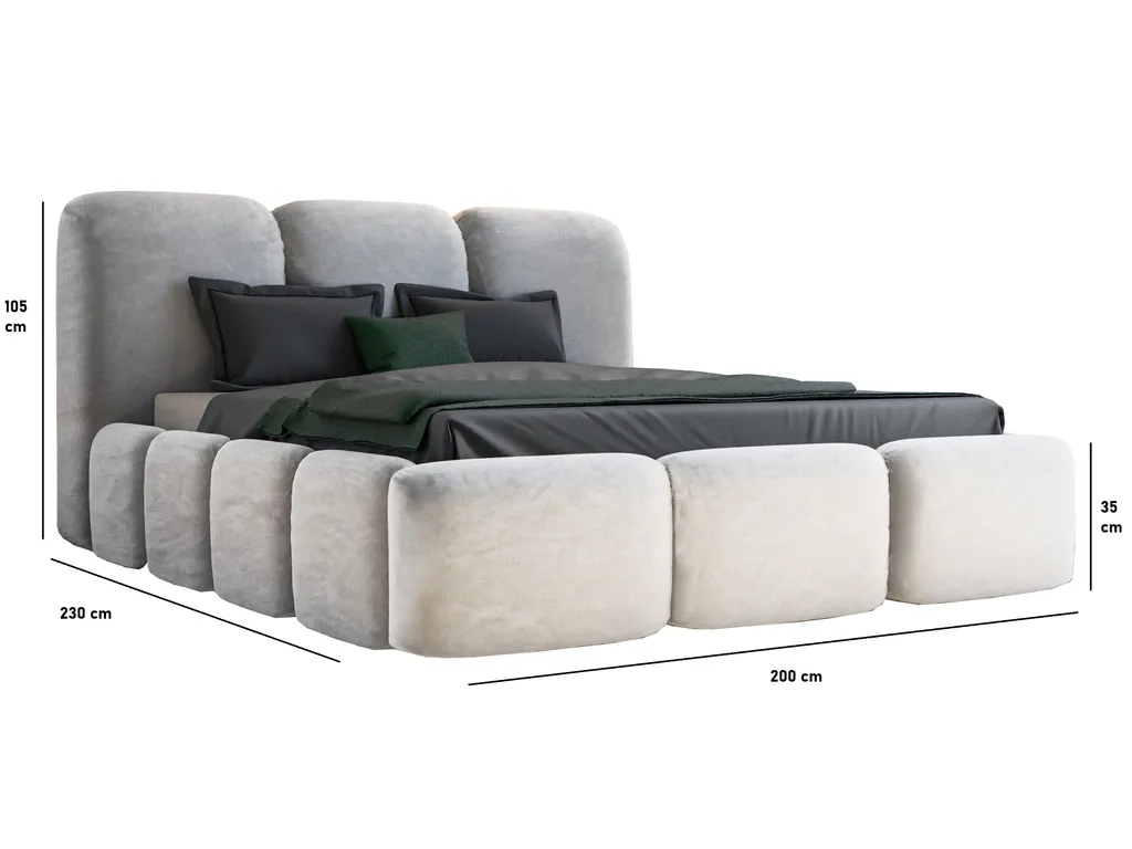 GRAINGOLD Exklusive Polsterbett 180×200 Cm Bubble – Designerbett Mit Velour Stoff, Bettkasten & Lattenrost – Hellgrau (Magic Velvet 2218)