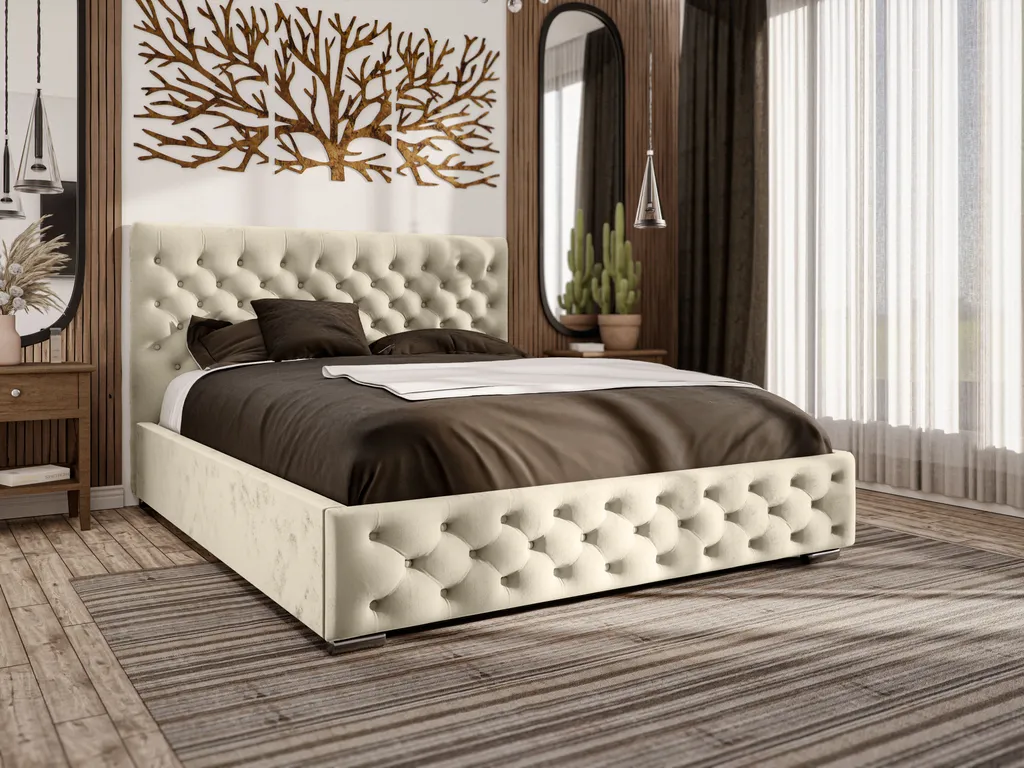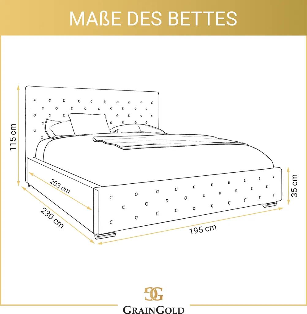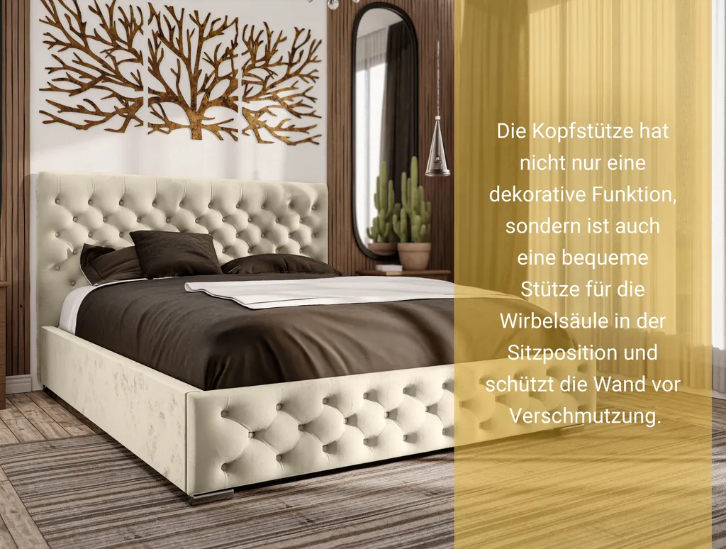 Schreibe die erste Rezension für „GRAINGOLD Glamour Bett 180×200 Marseille – Doppelbett Mit Bettkasten Und Lattenrost – Samtstoff, Verchromte Füße – Creme“ Antwort abbrechen