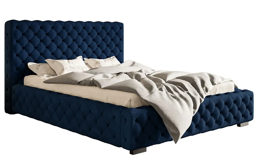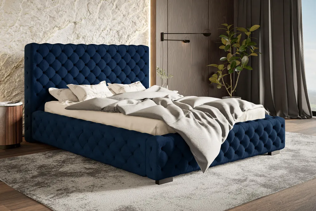 GRAINGOLD Glamour Bett 200×200 Cm Agis – Doppelbett Mit Lattenrost & Bettkasten – Polsterbett – Dunkelblau