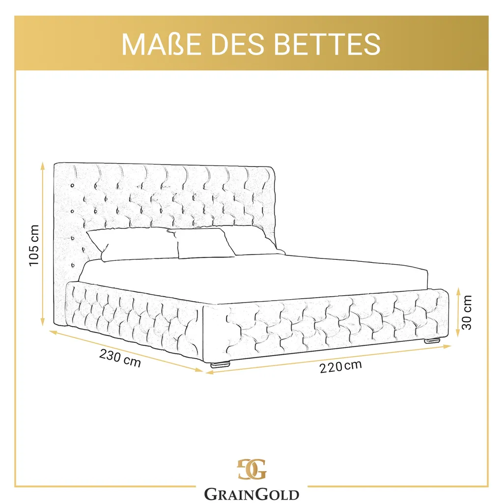 Schreibe die erste Rezension für „GRAINGOLD Glamour Chesterfield Bett 200×200 Cm Velutto – Samtbett Mit Lattenrost Und Bettkasten – Hellgrau (Magic Velvet 2218)“ Antwort abbrechen