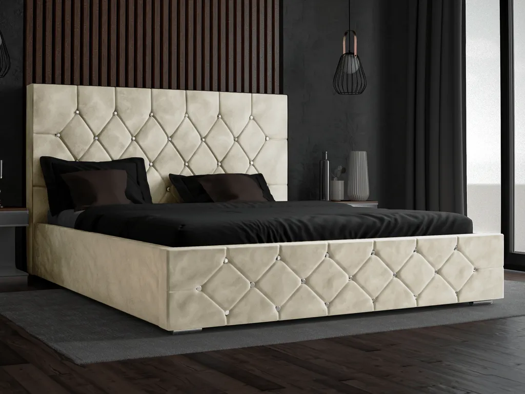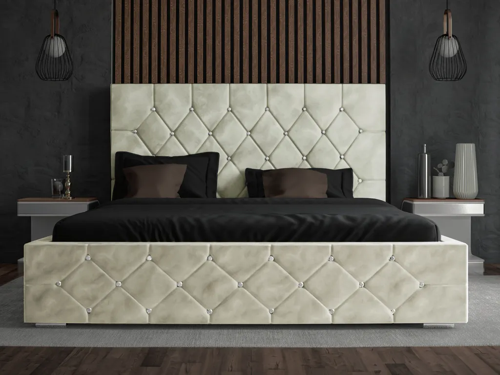 GRAINGOLD Glamour Polsterbett 160×200 Cm Rossa – Velour Stoff, Lattenrost, Bettkasten – Doppelbett Mit Kristallen – Beige (Magic Velvet 2201)