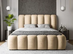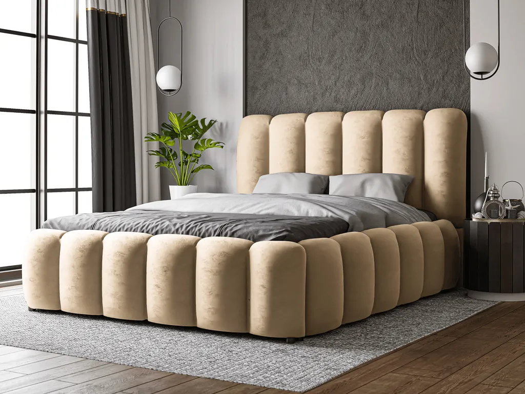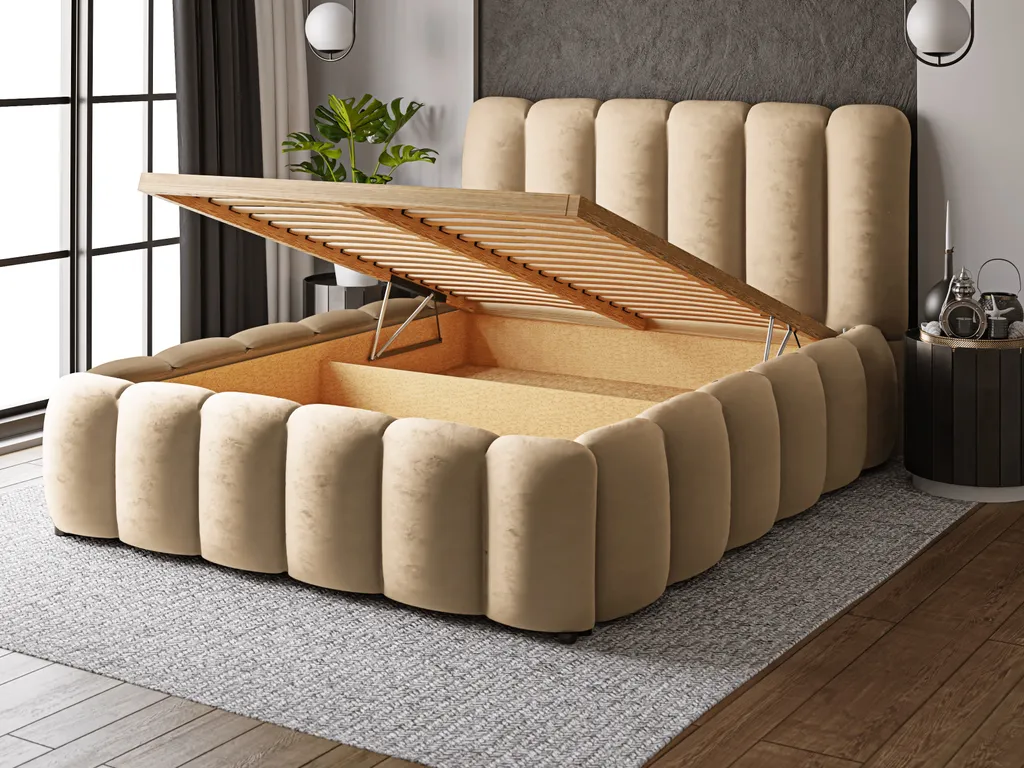 GRAINGOLD Modern Polsterbett 180×200 Cm Cloud – Bett Mit Lattenrost & Bettkasten – Dicker Schaum, Samtstoff – Beige (Monolith 04)