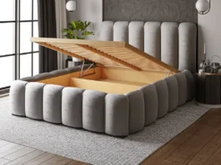 GRAINGOLD Modern Polsterbett 180×200 Cm Cloud – Bett Mit Lattenrost & Bettkasten – Dicker Schaum, Samtstoff – Hellgrau (Monolith 84)
