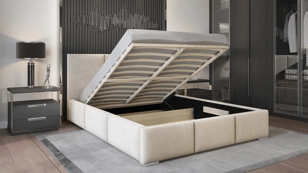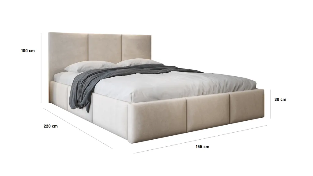 GRAINGOLD Polsterbett 140×200 Cm Lovro – Polyesterstoff, Bettkasten, Lattenrost – Stilvoll Doppelbett – Beige