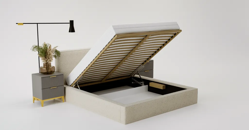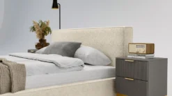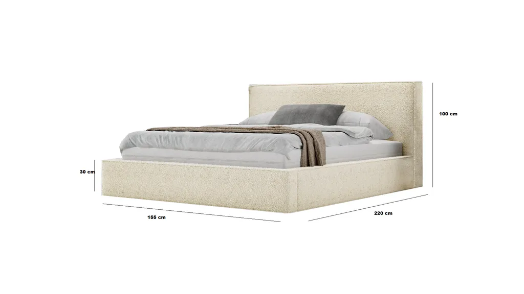 GRAINGOLD Polsterbett 140×200 Monaco – Doppelbett Mit Bouclé Stoff, Inkl. Lattenrost & Bettkasten – Schöne Schlafzimmerbett – Beige (Anthology 1)
