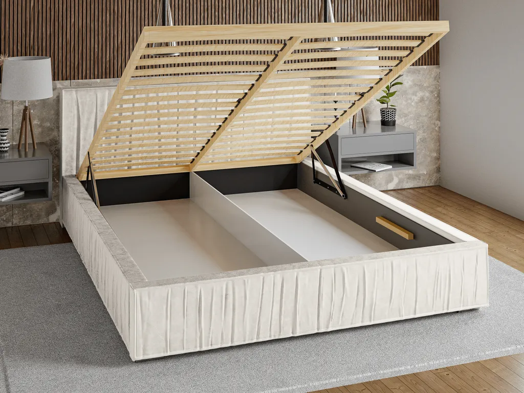 GRAINGOLD Polsterbett 180×200 Cm Rosario – Bettkasten & Lattenrost – Doppelbett Mit Einem Einzigartigen Stoff – Beige