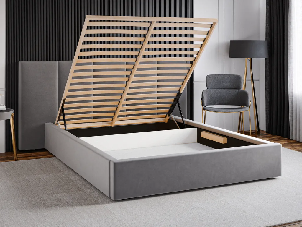 GRAINGOLD Polsterbett 180×200 Lisbon – Doppelbett Mit Stilvoll Massives Kopfteil – Bettkasten, Samtstoff & Lattenrost – Beige (Magic Velvet 2201)