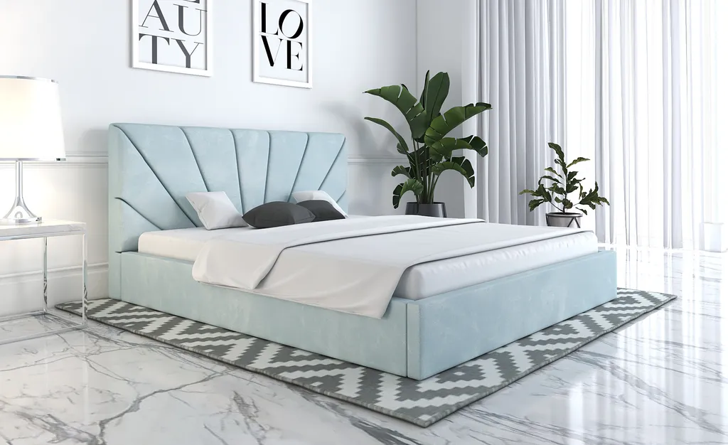 GRAINGOLD Samtbett 120×200 Orlo – Doppelbett Mit Bettkasten – Polsterbett Mit Rückenlehne Und Lattenrost – Hellblau