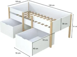 Halbhochbett Mit 2 Schubladen – 90 X 190 Cm – Weiß & Eiche – SISSY