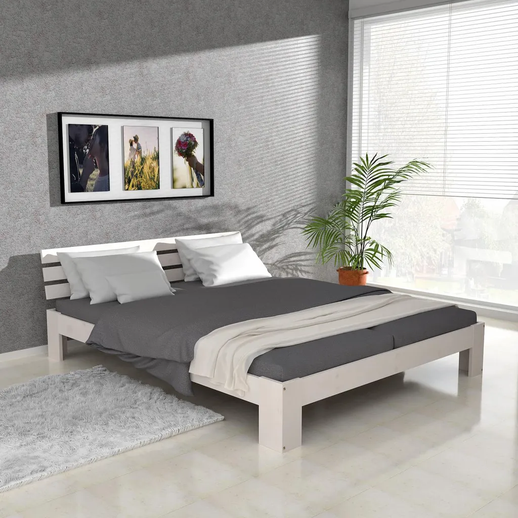 Holzbett Homelux Massivholz Bett Kiefer Doppelbett Balkenbett Bettgestell Bettrahmen Lattenrost 160 X 200 Cm Weiss (Lasee)