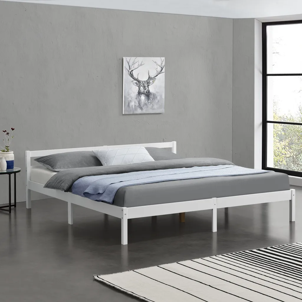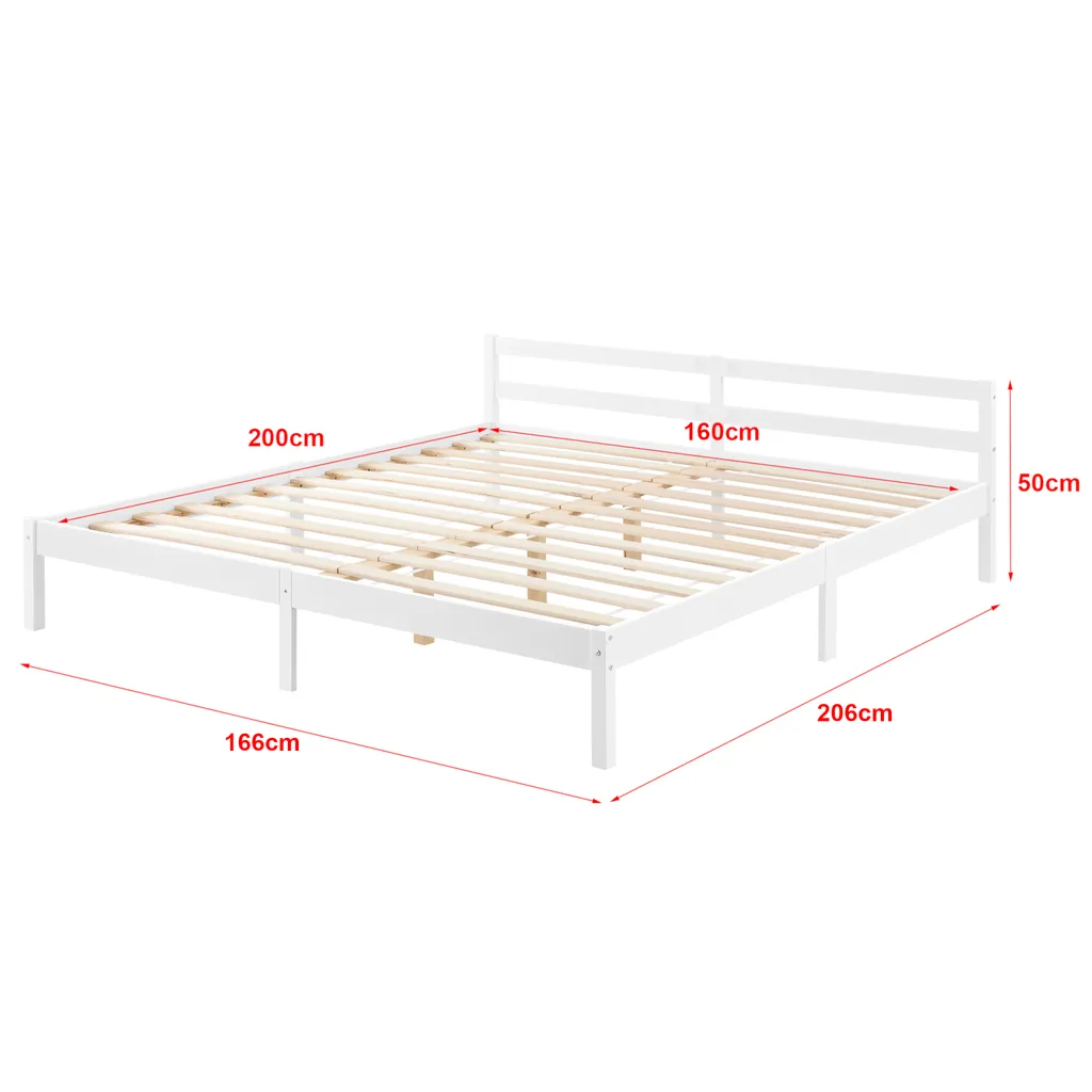 Holzbett Nakkila Bettgestell 160×200 Cm Doppelbett Mit Kopfteil Ehebett Gästebett Kiefernholz Weiß [en.casa]
