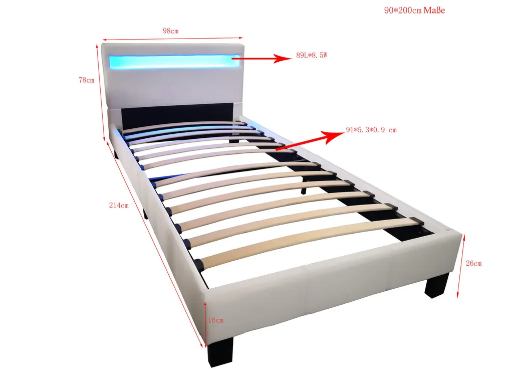 HOME DELUXE – LED Bett ASTRO 90 X 200 Schwarz Polsterbett Bett Inkl. Lattenrost