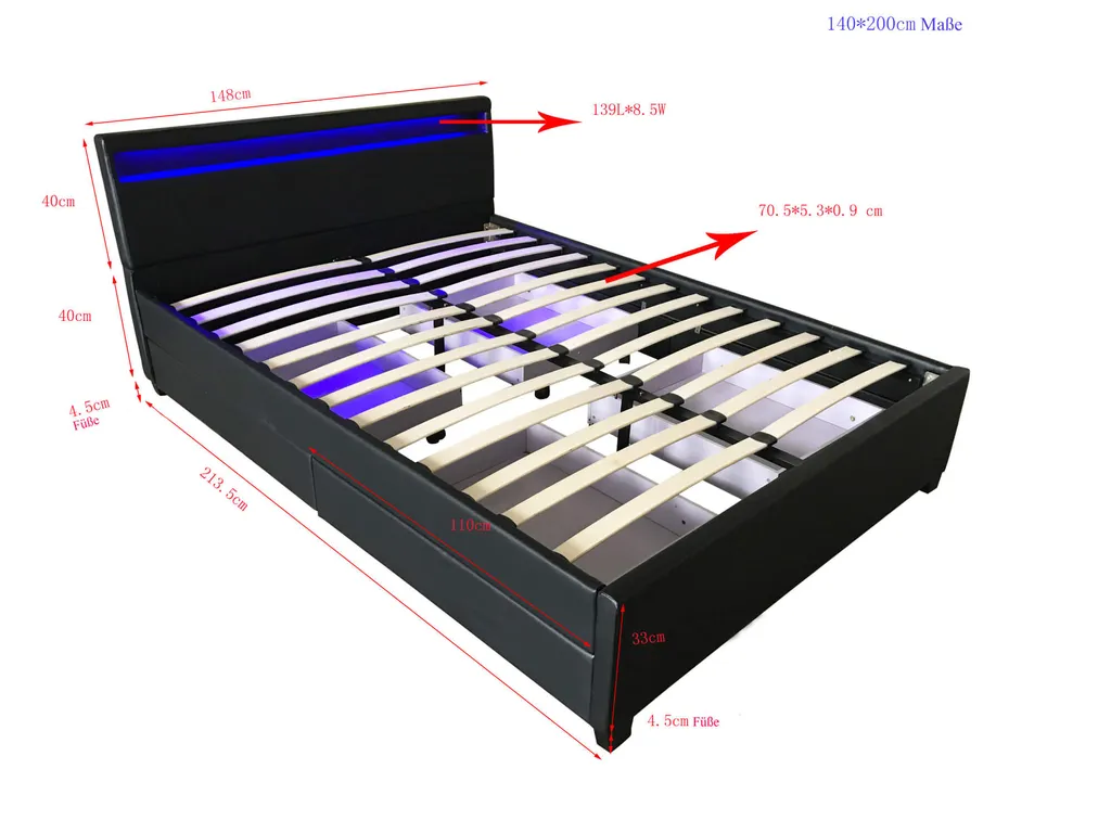 Schreibe die erste Rezension für „HOME DELUXE – LED Bett NUBE Mit Schubladen 140 X 200 Weiß Polsterbett Bett Inkl. Lattenrost“ Antwort abbrechen