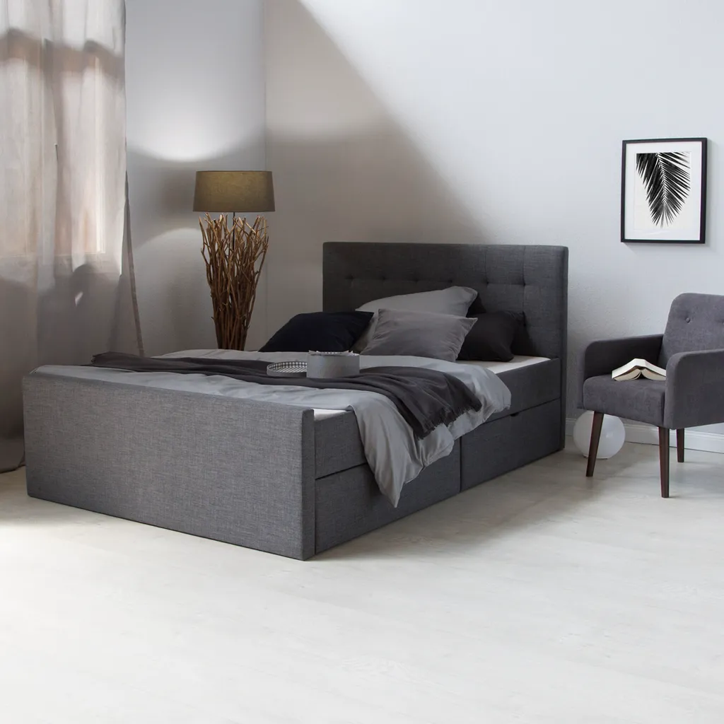 Homestyle4u 1883, Bett Polsterbett 140×200 Mit Bettkasten Grau Bettgestell Mit Lattenrost Doppelbett 140 X 200 Cm Anthrazit