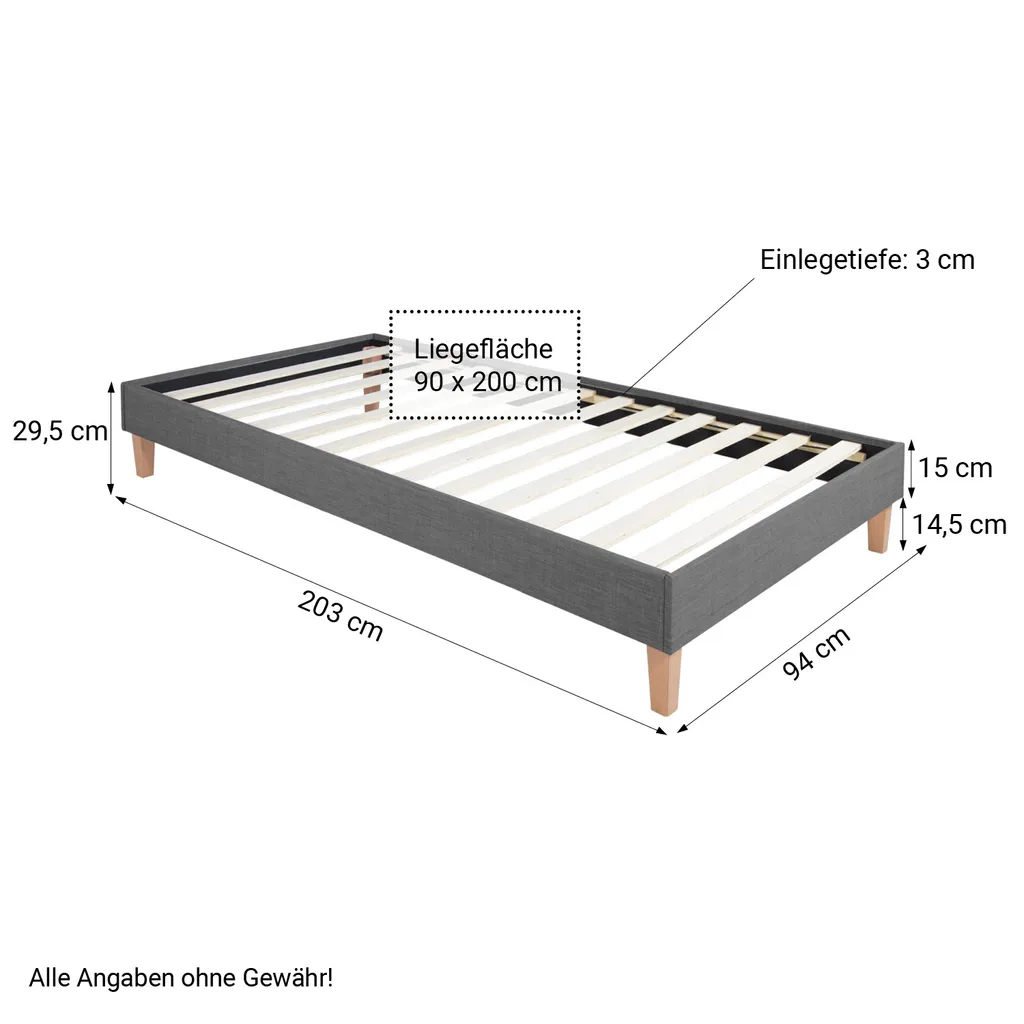 Homestyle4u 1984, Polsterbett 90 X 200 Grau Mit Lattenrost Futonbett Bett Bettgestell