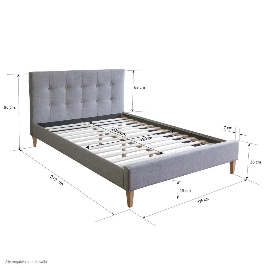 Homestyle4u 1985, Polsterbett 120×200 Grau, Doppelbett Bett Mit Lattenrost Rückenlehne