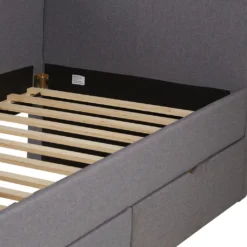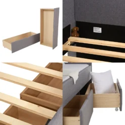 Homestyle4u 1987, Polsterbett 90×200 Cm Mit Bettkästen, Tagesbett Schlafcouch Gästebett Ausziehbar Grau