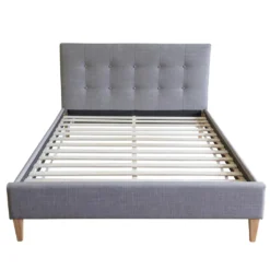 Homestyle4u 2279, Polsterbett Mit Matratze 140×200 Lattenrost Doppelbett Stoffbett Bettgestell Bett Grau
