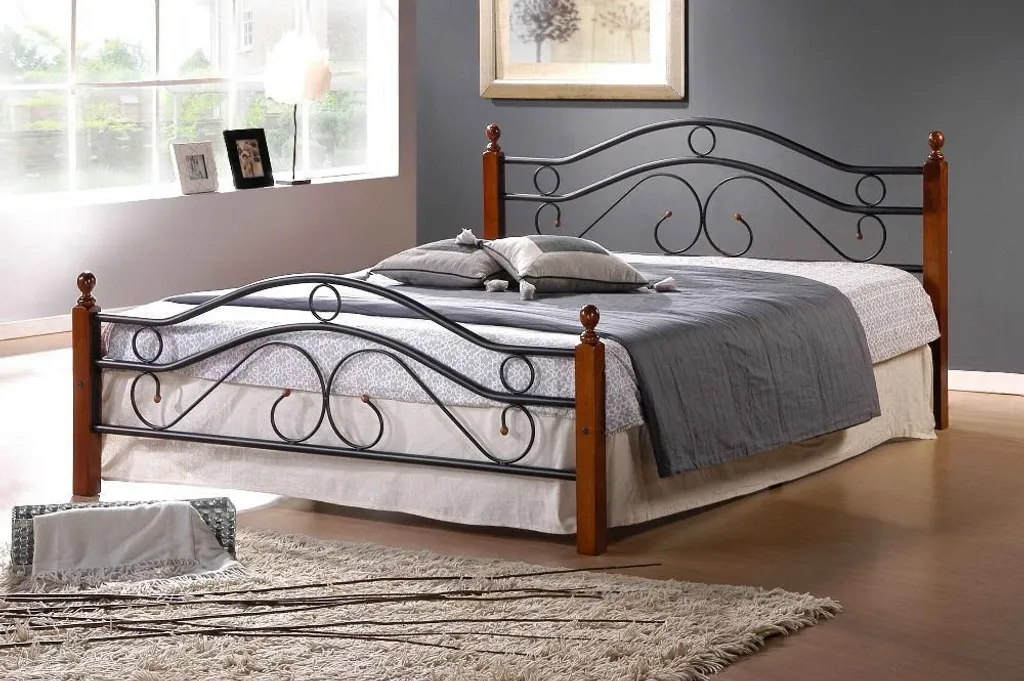 Homestyle4u 600, Metallbett 140×200 Bettgestell Mit Lattenrost, Schwarz Braun
