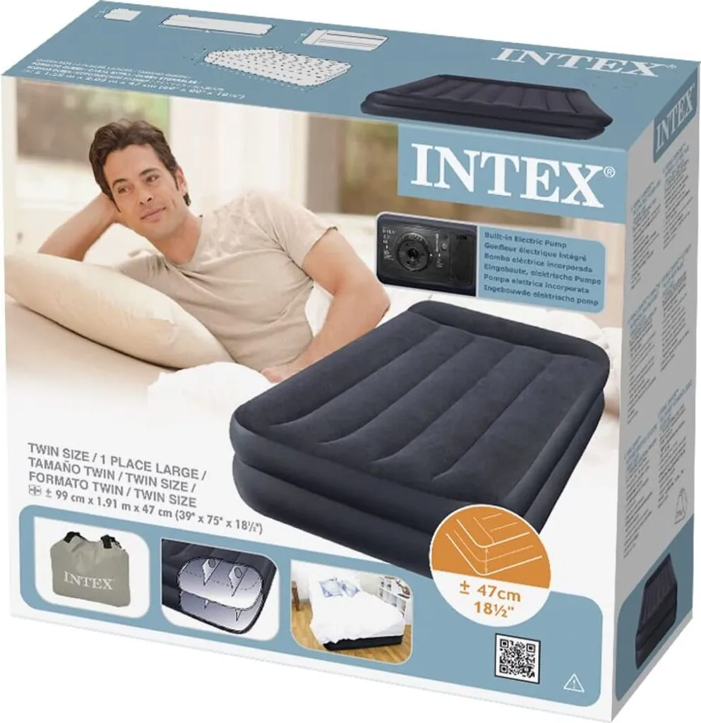 Intex 64122 Pillow Rest Raised Single Luftbett Mit Integrierter Luftpumpe , 99 X 191 X 42 Cm