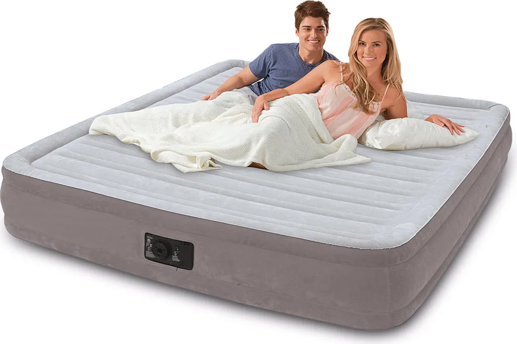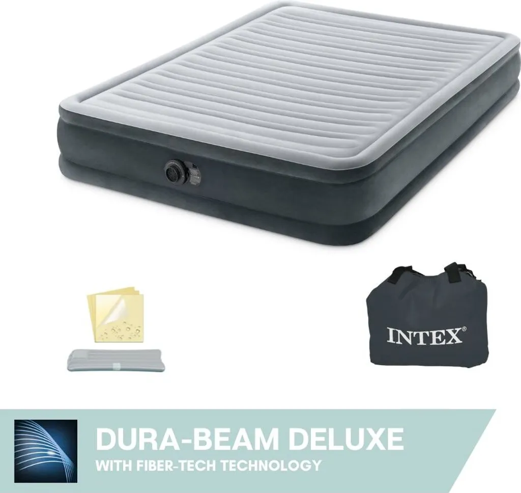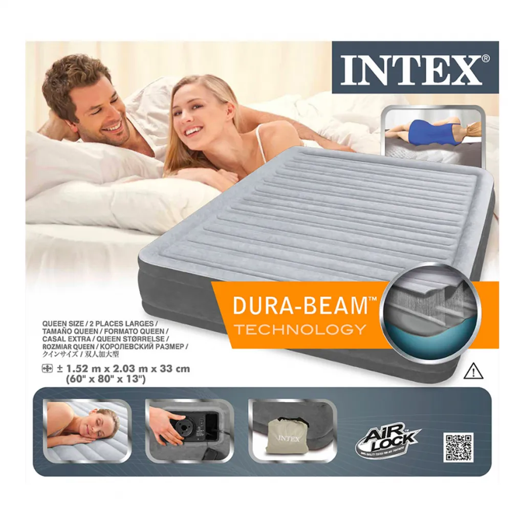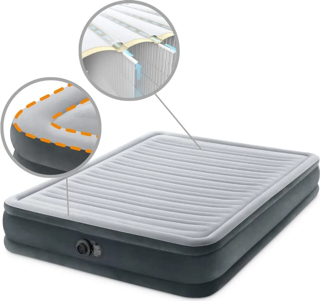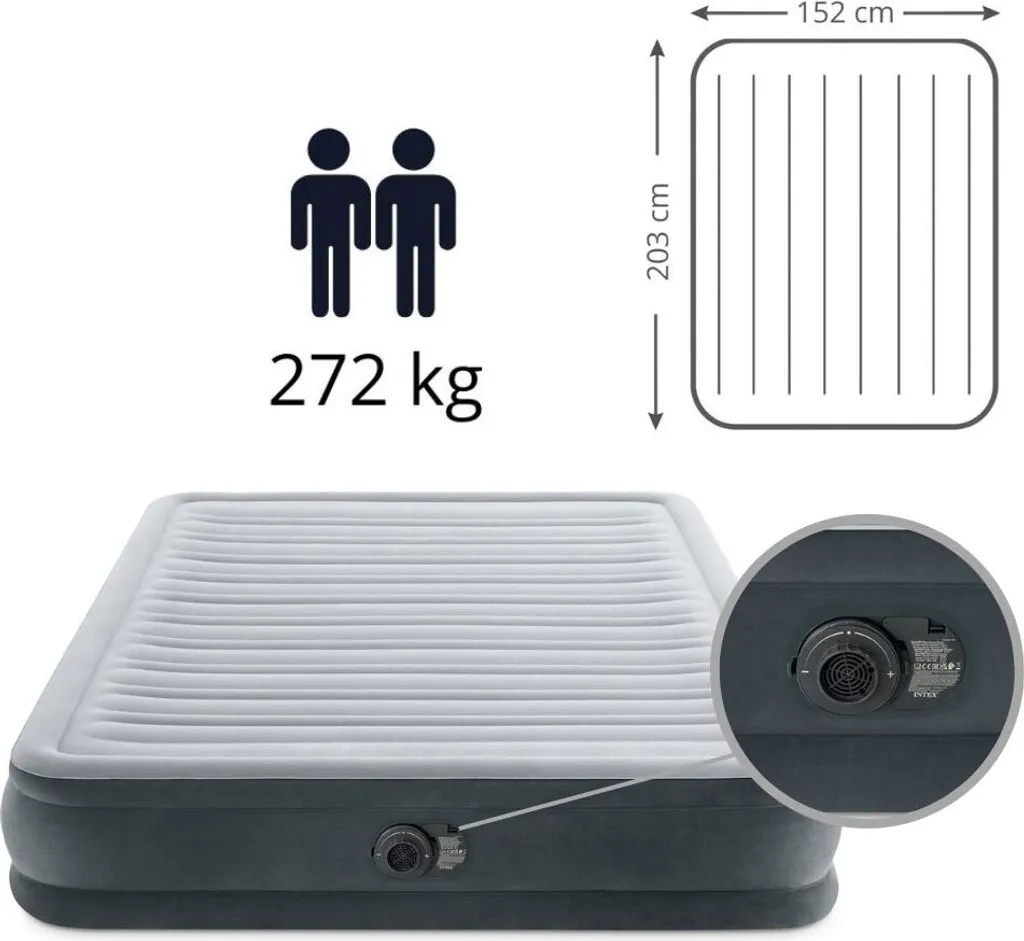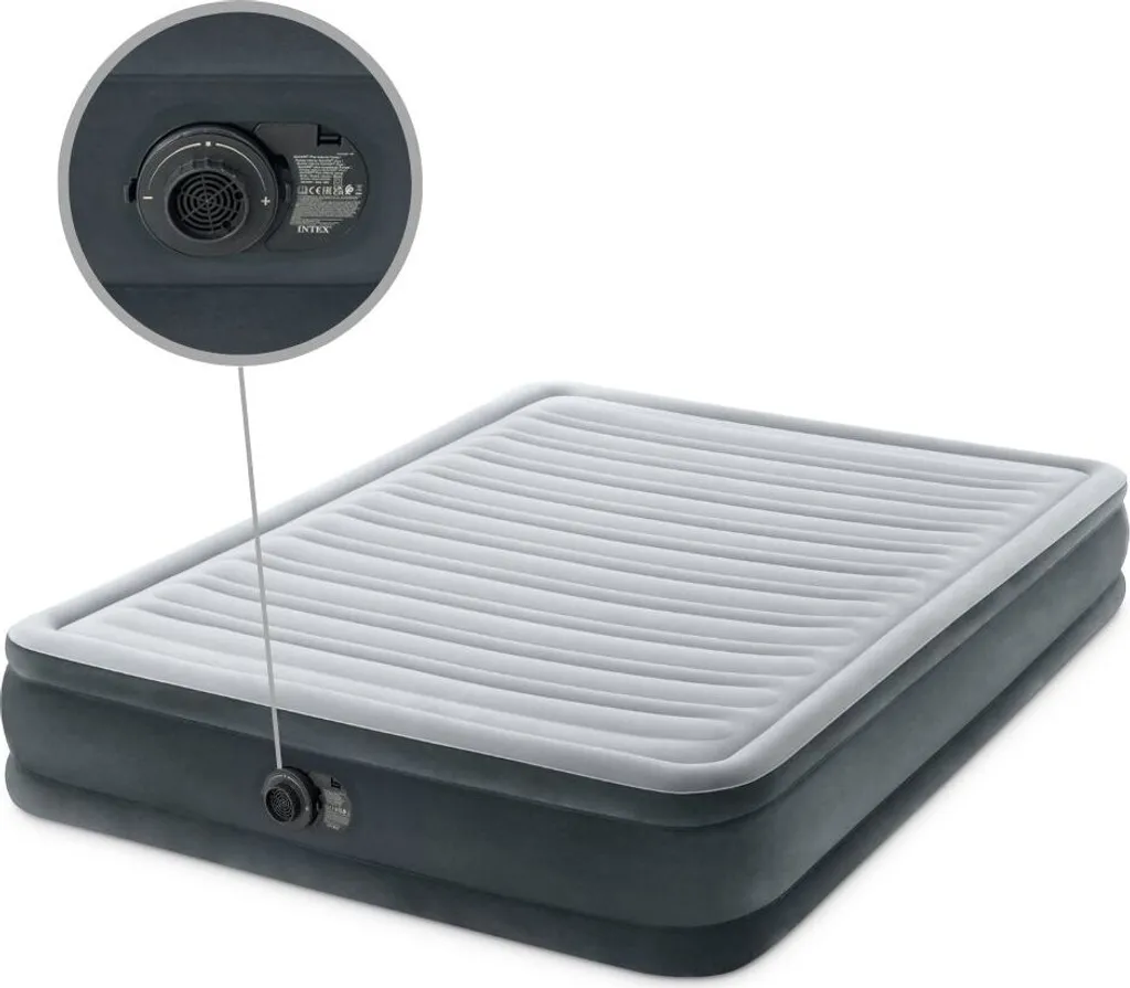 Intex Comfort Plush Mid-Rise – Luftmatratze – 2 Personen – 152x203x33 Cm (BxLxH) – Grau – Mit Eingebauter Motorpumpe